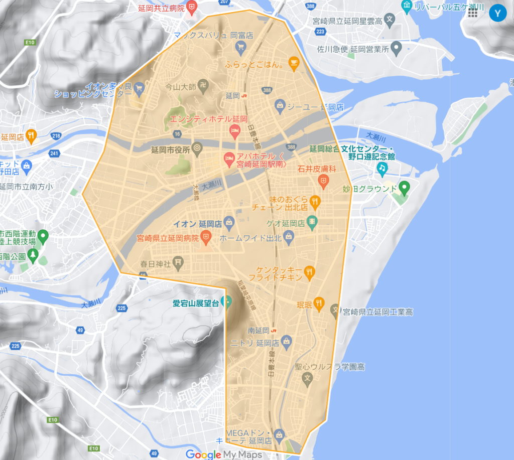 下記の写真から配達エリア確認出来ます。※マップの黄色の部分が拡張エリアです。